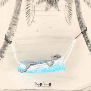 L’emergenza Covid lo ha portato a ri-vedere le mascherine. Ed ecco qui i suoi lavori. Li trovate su Instagram e su Facebook, perchè i social sono la sua vetrina. Ha corredato i suoi avori con questa frase che ci piace riportare proprio in questi giorni di allentamento del lockdown.